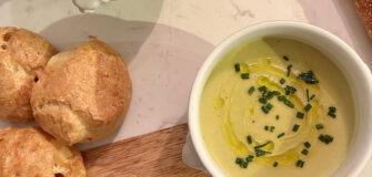 When slightly cooled, slice into squares and serve. Top with wild arugula and a squeeze of lemon juice and chili flakes for added fanciness.