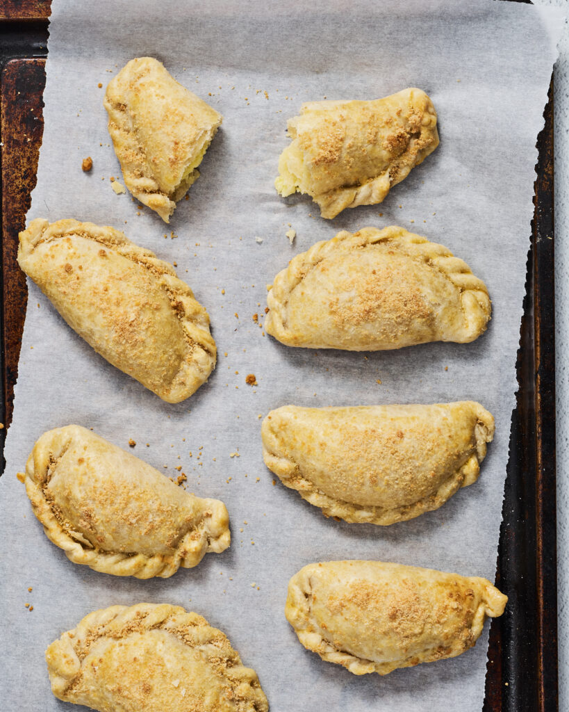 In my Seattle neighborhood, there are two shuls just down the block from each other — one Ashkenazic and the other Sephardic. My family attended the Ashkenazic shul, and still does, but I had friends at both. So when shul was over and there was a kiddush at the Sephardic shul, that’s where I would end up, all because of these borekas — stuffed with mashed potatoes and feta and topped with Parmesan, all in a flaky handmade crust. I’d eat two or three at kiddush and always take an extra one to go!