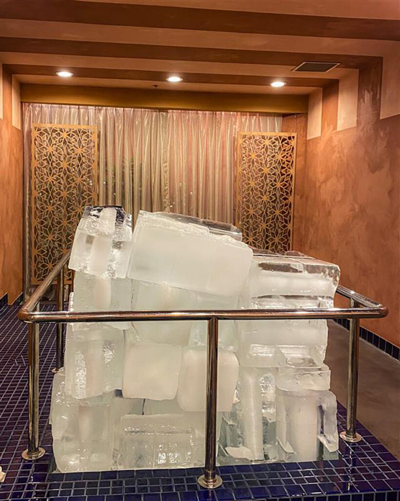 And because a mikvah requires living water, the AJU Community Mikvah uses large blocks of ice to bring in this water. The ice melts into a separate reservoir and gradually warms.
